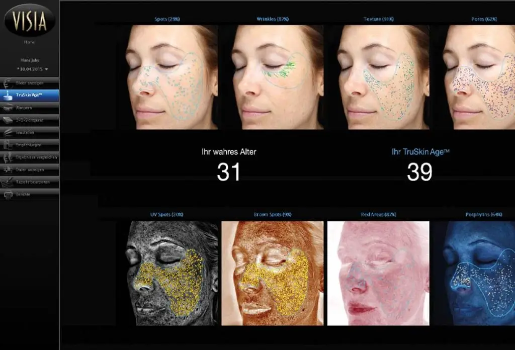 Mach dich bereit für eine neue Hautreise! Mit der Visia® Hautanalyse erfassen wir präzise, was deine Haut wirklich braucht. Unsere hochmoderne Technologie zeigt nicht nur sichtbare Probleme wie Pigmentflecken, Falten und Poren, sondern macht auch versteckte Hautschäden wie UV-Schäden, Rötungen, Hautunreinheiten und Feuchtigkeitsverlust sichtbar.